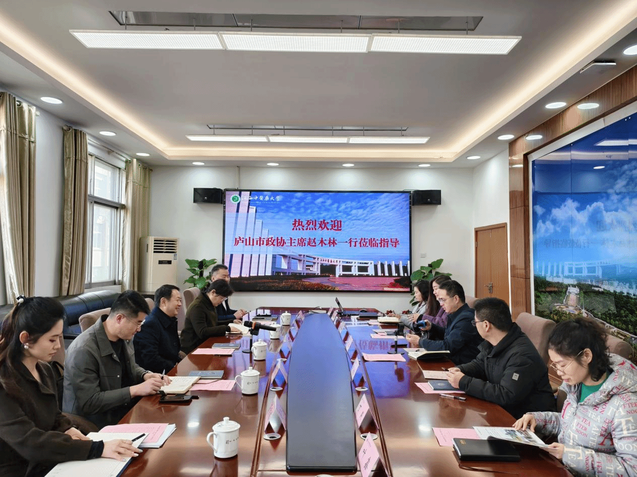 座谈会上,刘海首先对赵木林主席一行表示热烈欢迎,详细介绍了学校及继续教育学院的发展历程、办学特色,重点讲解了学院在培训方面的优势资源和特色成果。赵木林对学院的热情接待表示衷心感谢,他指出,庐山市正深入贯彻落实中医药强省战略部署,着力打造杏林文化特色品牌,此次前来旨在深化校地合作,推动医德医风教育基地建设,助力中医药文化传承与发展。